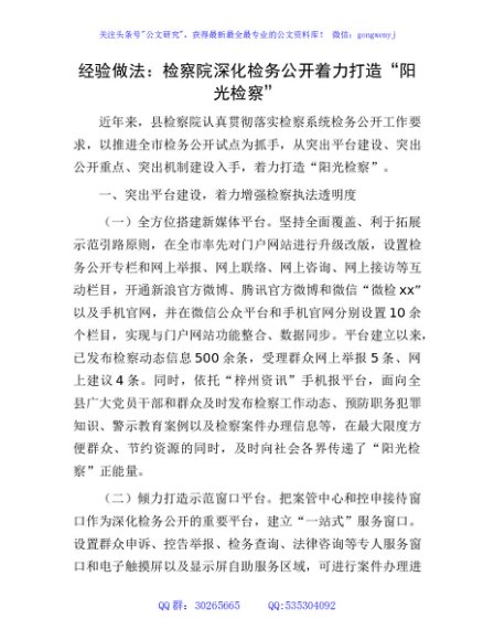 / 经验做法:检察院深化检务公开 着力打造“阳光检察”