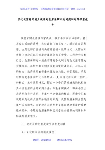 / 以优化营商环境为视角对政府采购中的问题和对策探索报告