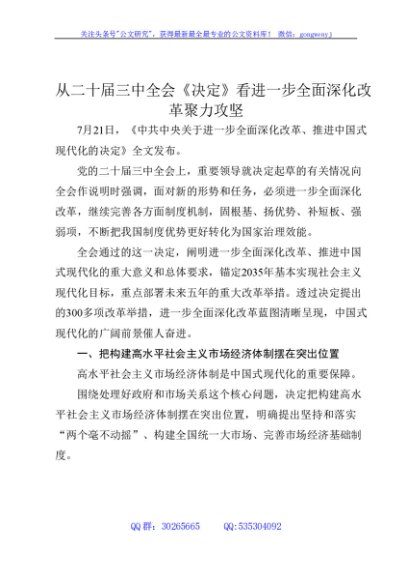 / 从党的二十届三中全会决定看进一步全面深化改革聚力攻坚9500 讲稿