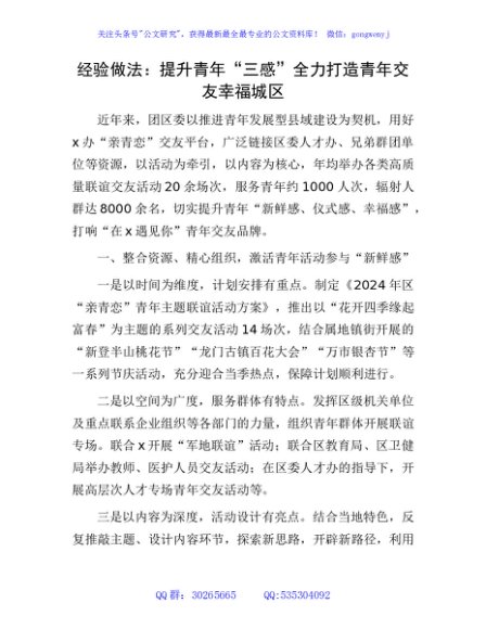 / 经验做法:提升青年“三感” 全力打造青年交友幸福城区