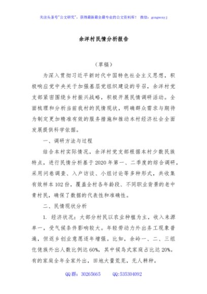 / 余洋村民情分析报告