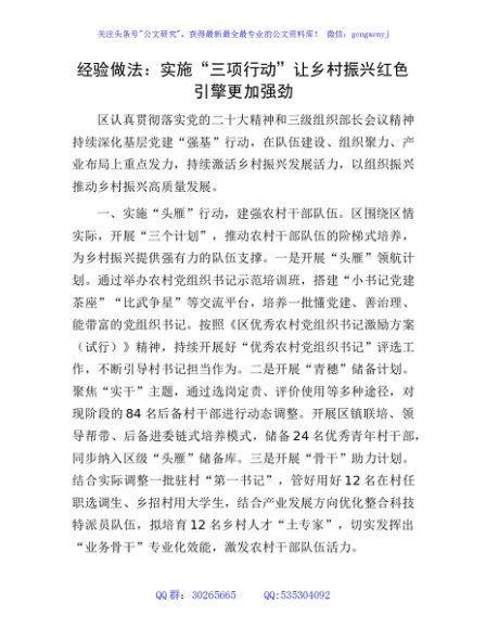 / 经验做法:实施“三项行动 ” 让乡村振兴红色引擎更加强劲