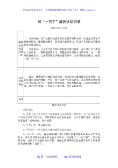 局“一把手”廉政谈话记录