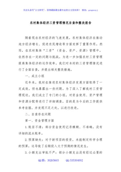 / 农村集体经济三资管理情况自查和整改报告