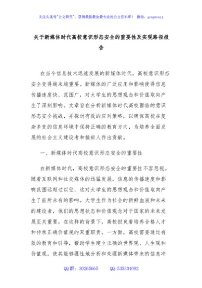 / 关于新媒体时代高校意识形态安全的重要性及实现路径报告