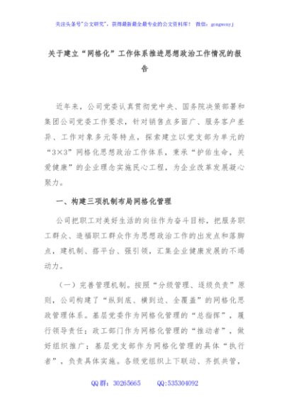 / 关于建立“网格化”工作体系推进思想政治工作情况的报告