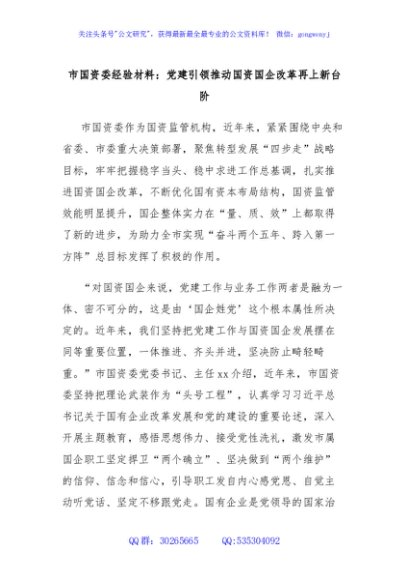 / 市国资委经验材料:党建引领推动国资国企改革再上新台阶