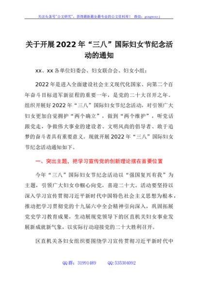 / 关于开展2022年“三八”国际妇女节纪念活动的通知