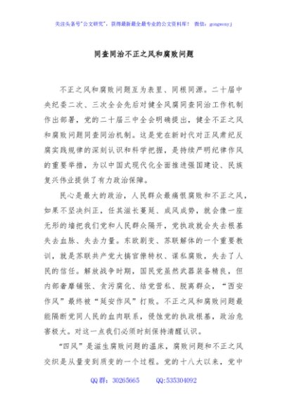 / 同查同治不正之风和腐败问题