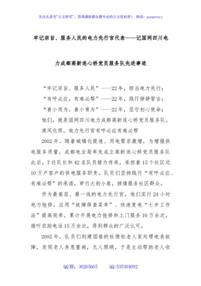/ 牢记宗旨、服务人民的电力先行官代表——记国网四川电力成都高新连心桥党员服务队先进事迹