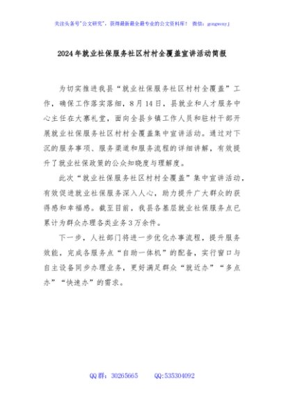 / 2024年就业社保服务社区村村全覆盖宣讲活动简报