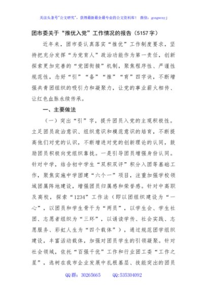 / 团市委关于“推优入党”工作情况的报告(5157字)