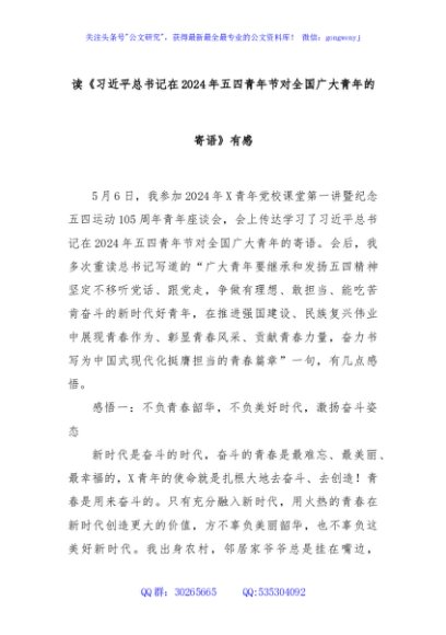 / 读《习近平总书记在2024年五四青年节对全国广大青年的寄语》有感