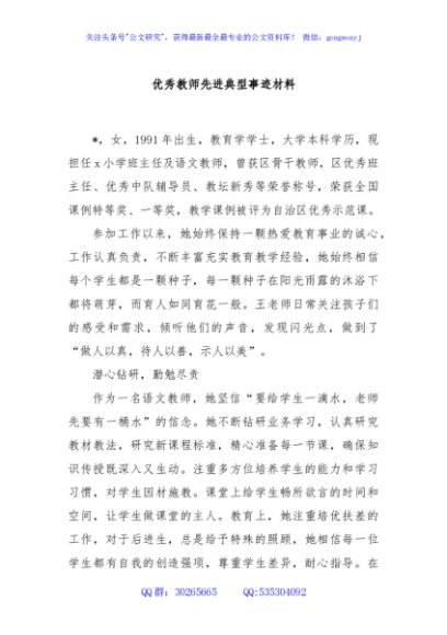 / 优秀教师先进典型事迹材料