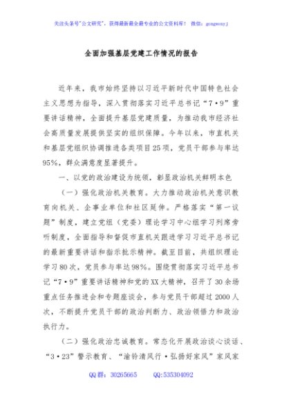/ 全面加强基层党建工作情况的报告