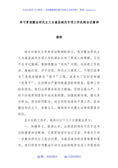 / 学习贯彻整治形式主义为基层减负专项工作机制会议精神感悟