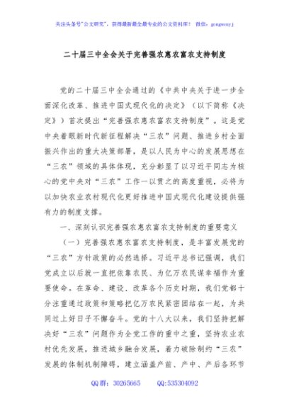 / 二十届三中全会关于完善强农惠农富农支持制度
