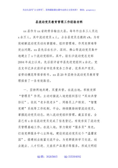 / 县流动党员教育管理工作经验材料