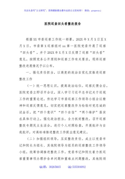 / 医院巡查回头看整改报告