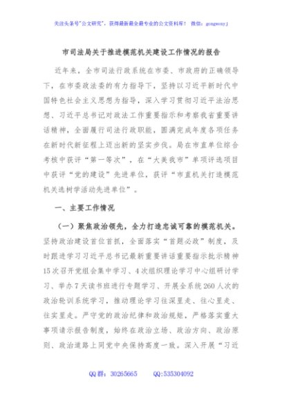 / 市司法局关于推进模范机关建设工作情况的报告
