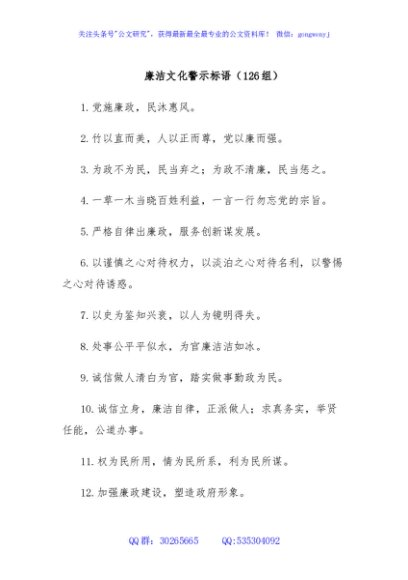 / 廉洁文化警示标语(126组)