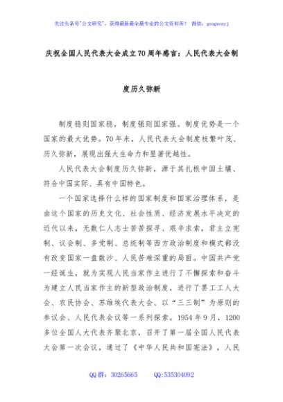 / 庆祝全国人民代表大会成立70周年感言:人民代表大会制度历久弥新