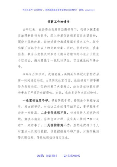 / 信访工作检讨书