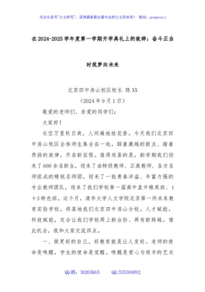 / 在2024-2025学年度第一学期开学典礼上的致辞:奋斗正当时筑梦向未来