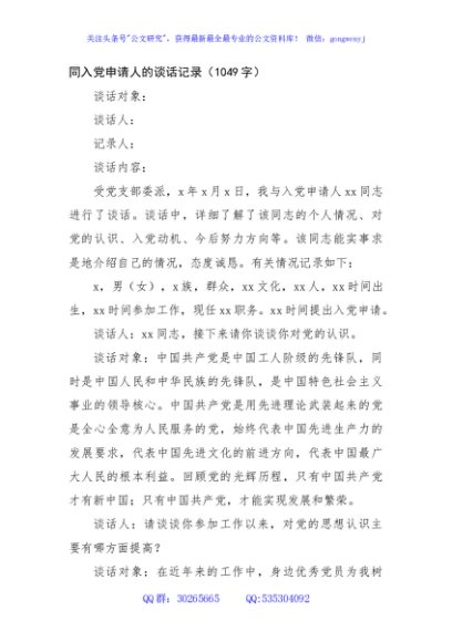 / 同入党申请人的谈话记录(1049字)