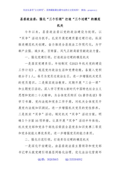 / 县委政法委:强化“三个引领”打造“三个过硬”的模范机关