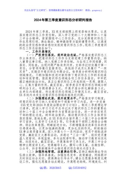 / 2024年第三季度意识形态分析研判报告