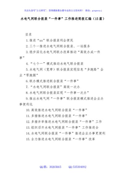 / (15篇)水电气网联合报装“一件事”工作推进简报汇编