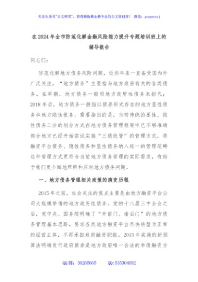 / 在2024年全市防范化解金融风险能力提升专题培训班上的辅导报告