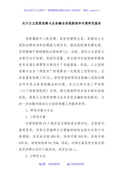 / 关于公立医院党建与业务融合实践探索和对策研究报告