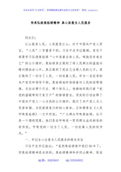 / 传承弘扬焦裕禄精神 真心实意为人民服务