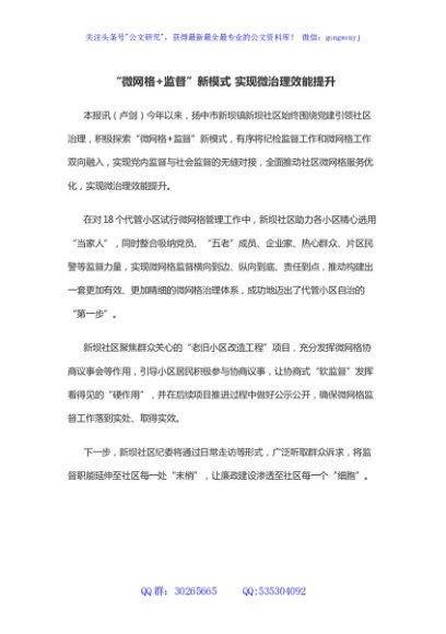 / “微网格+监督”新模式 实现微治理效能提升