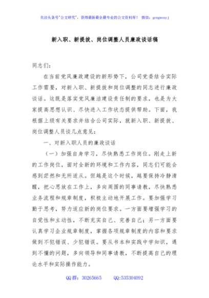 / 新入职、新提拔、岗位调整人员廉政谈话稿