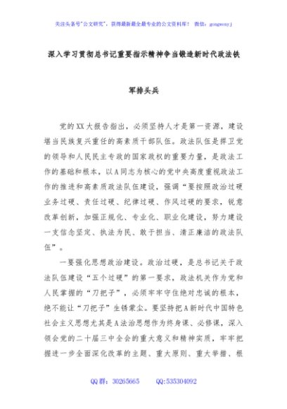 / 深入学习贯彻总书记重要指示精神争当锻造新时代政法铁军排头兵