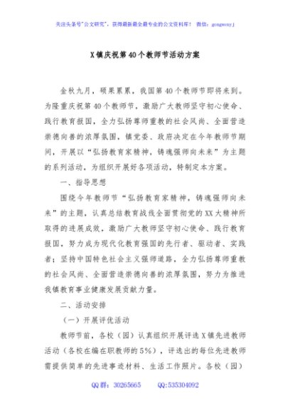 / X镇庆祝第40个教师节活动方案