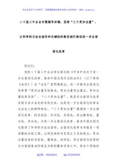 / 二十届三中全会专题辅导讲稿:坚持“三个更加注重”,以科学的方法论指导和关键性的路径指引推动进一步全面深化改革