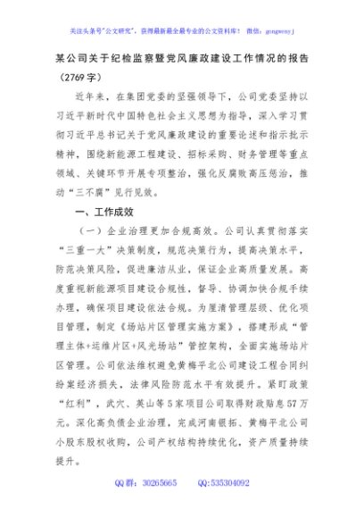 / 国企纪检监察暨党风廉政建设工作情况的报告(2769字)