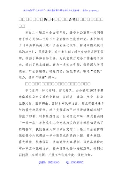 / 党办干部学习党的二十届三中全会精神感悟(1252字)