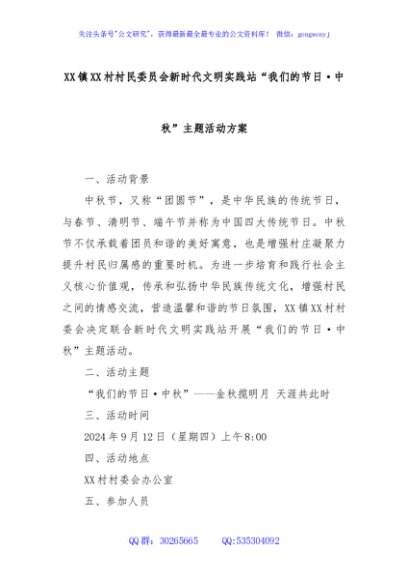 / XX镇XX村村民委员会新时代文明实践站“我们的节日·中秋”主题活动方案