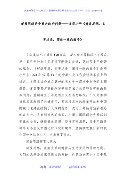 / 解放思想是个重大政治问题——读邓小平《解放思想,实事求是,团结一致向前看》