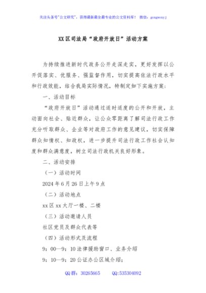 / XX区司法局“政府开放日”活动方案