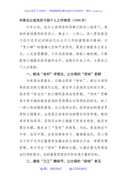 / 市委办公室党员干部个人工作感悟(1596字)