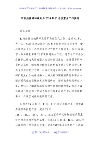 / 市自然资源和规划局2024年10月份重点工作安排