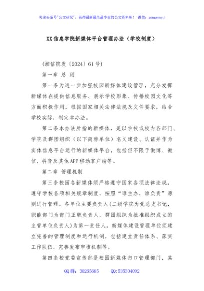 / XX信息学院新媒体平台管理办法(学校制度)
