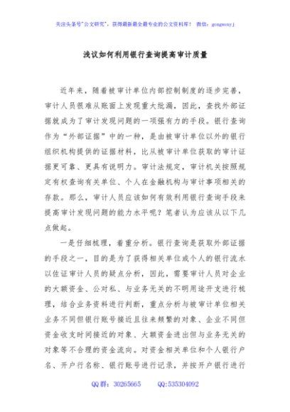 / 浅议如何利用银行查询提高审计质量