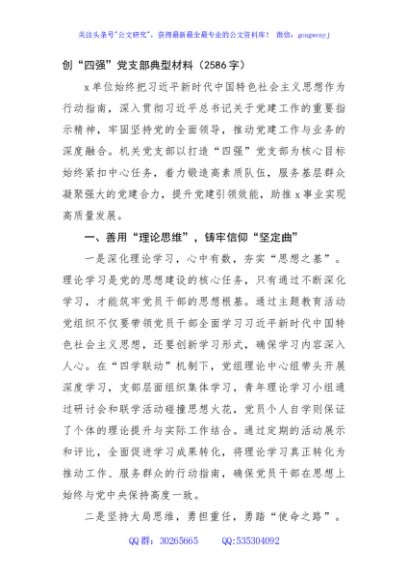 / 创“四强”党支部典型材料(2586字)